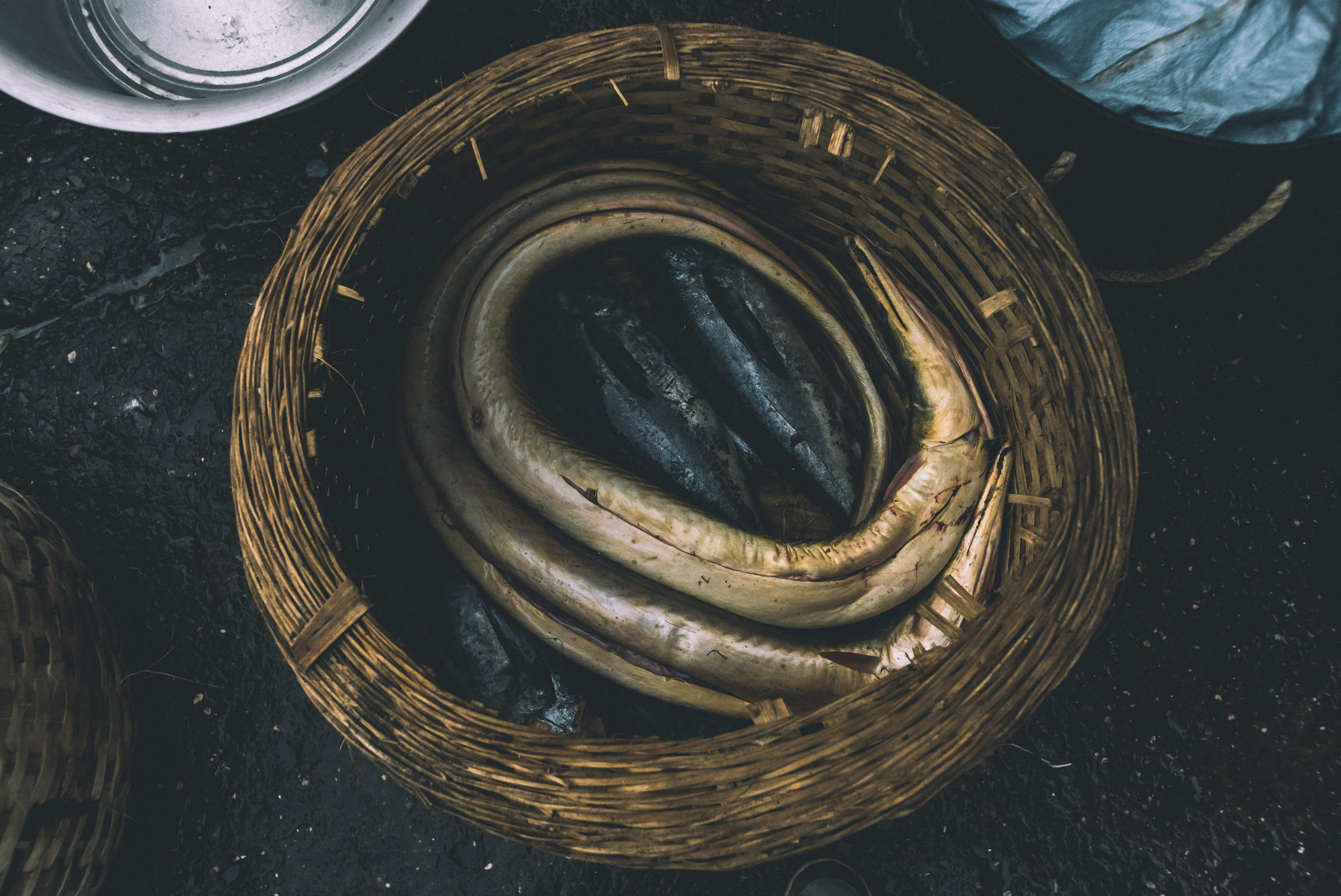 The Koli Fishermen go out to sea and catch the fish, while the women help to sell them. The Banjara men handle hauling the fish off the boats, while the women help in the peeling activities. The Hindu Marathas are the carters - both men and women. They transport fish from the wholesalers to smaller sellers within Sassoon and other parts of the city.